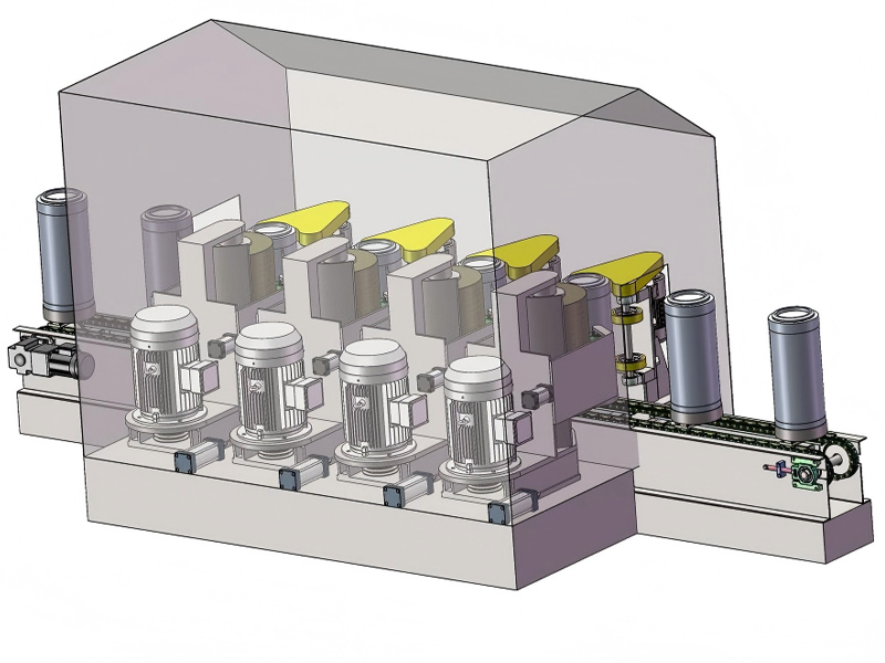 It adopts double-row chain drive, which has a strong load-bearing capacity; each station is equipped with a dedicated rotating fixture, and the fixture part is made of wear-resistant nylon material to avoid scratching the workpiece; the fixture moves in a circular motion with the chain and has a self-locking function to prevent it from loosening midway; the conveying speed is adjustable and controlled by a frequency converter, matching the workpiece conveying speed to the grinding time (1-5m/min).